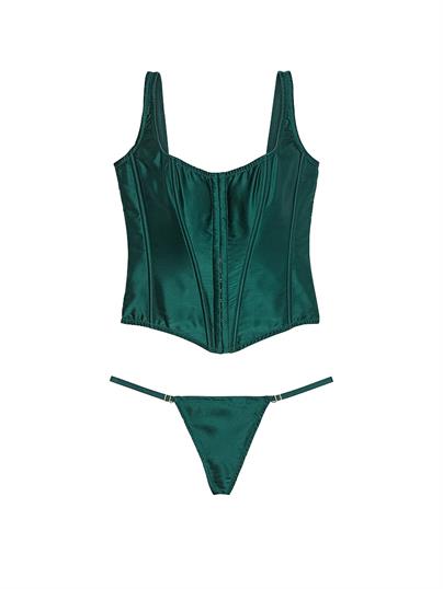 İkonik orijinalinden ilham alan bu seksi klasik ipek büstiyer takımı, ultra lüks bir görünüm ve his için %100 ipekten üretildi. Klasik stil, baştan sona bağcıklı, önde kopçalı ve arka kısımda ayarlanabilir bağcık detayını içerir.